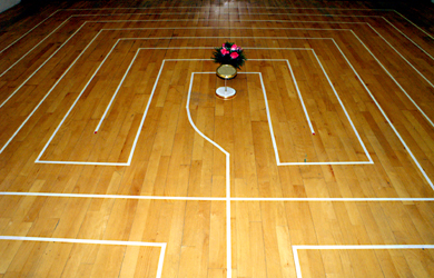 Labyrinth mit 50mm Maler-Kreppband abgeklebt. Zur Vorlage und Inspiration